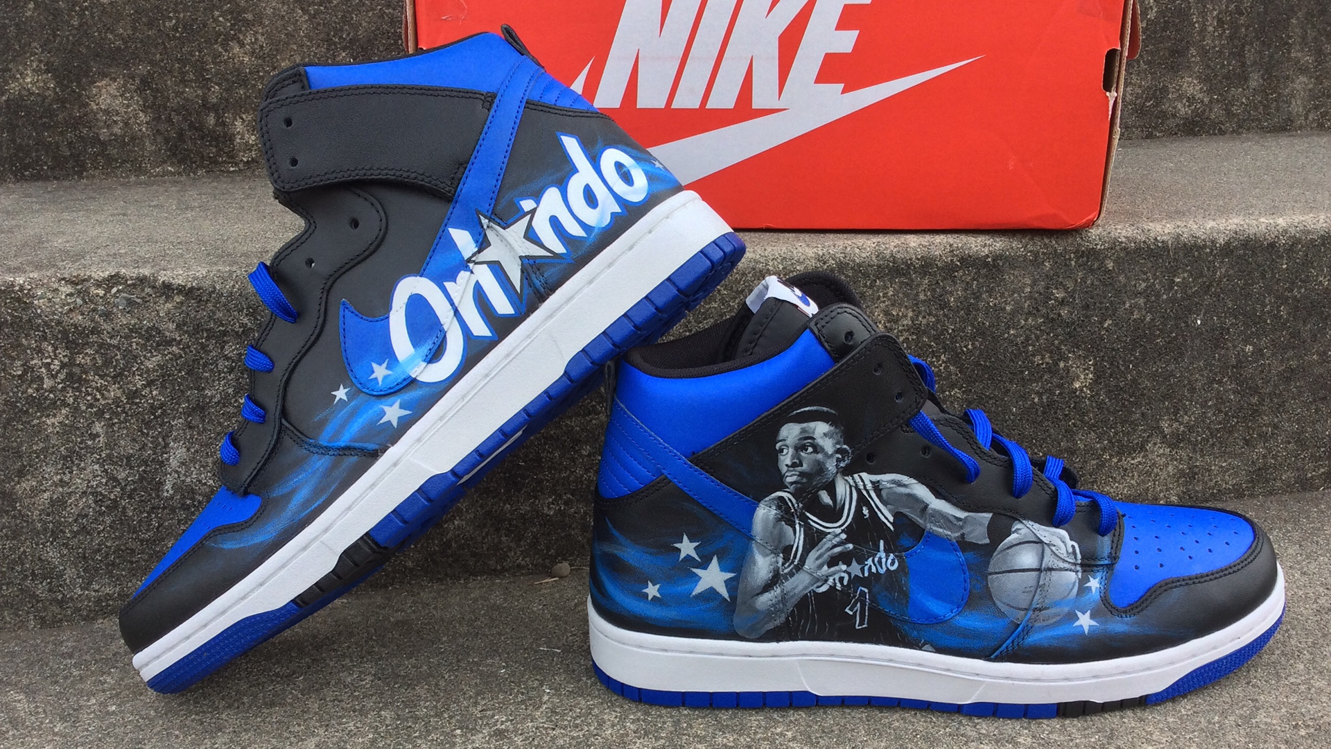 Anfernee "Penny" Hardaway, Orlando Magic inspired Nike Dunk CMFT shoes. Hand painted with Angelus acrylic leather paint.
